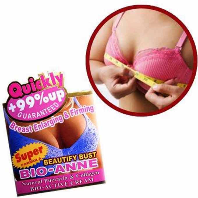 BUST UP – Bio-Active Breast Enlarging Firming Cream BIO-ACTIVE CREAM Quickly +99% UP Guaranteed BIO-ANNE Bio-Active Cream has formulated from Natural Pueraria and Collagen to enlarge the size of breast and especially formulated to help firm and tighten the skin in the breast area. Those who have used BIO-ANNE Bio-Active Cream have quickly and naturally increased bust size as well as gained firmness and tightening. As a result, BIO-ANNE has been effective in over 99% of women who have used it. You will see an appreciable improvement within 1 week.