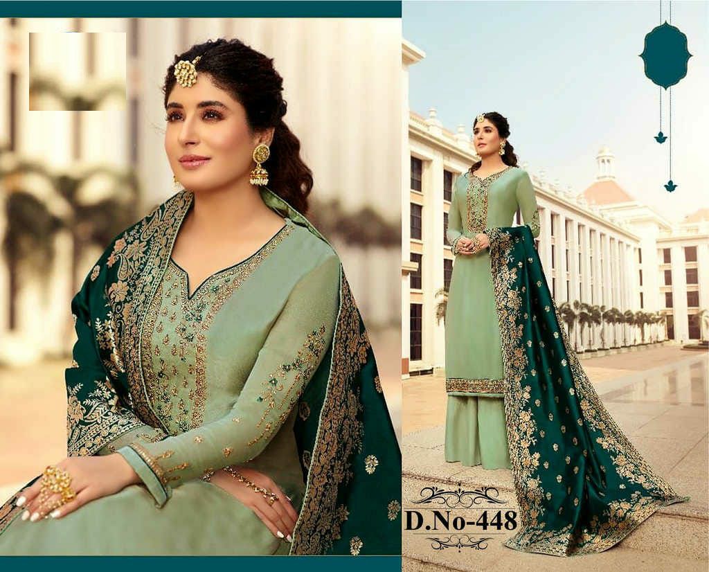 Main material – Silk body with embroidery and Sleep also embroidery with Katan Dupatta