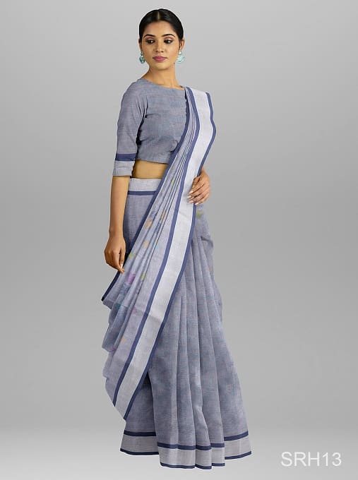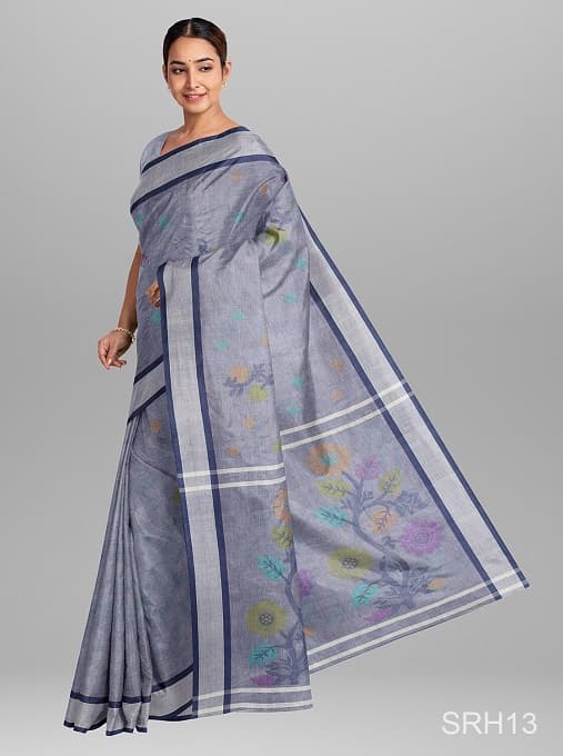 The interesting aspect of the sari is that it has been worked in the area and body matching colors. Also interesting is that the sari has 3 hand work and light work inside. 1 sari of 1 color. Matching colors can be changed by keeping the design straight. . All in all there are interesting designs in the market. Hand work has been done with cotton yarn.
